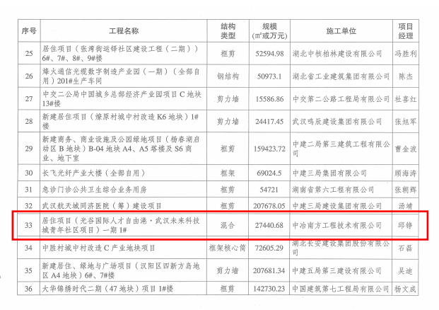 2022年底,在湖北省建設工程質量安全協會公布的2022-2023年度第一批湖北省建筑結構優質工程名單中,中國光谷·數字經濟產業園(一期)、光谷國際人才自由港·武漢未來科技城青年社區項目(一期)均獲得“湖北省建筑結構優質工程獎”。